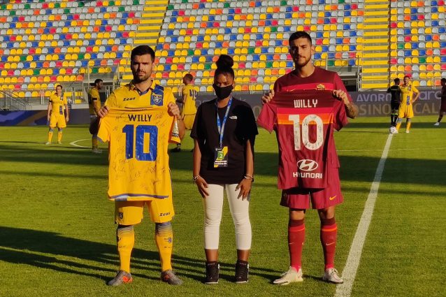 Prima del fischio d'inizio dell'amichevole tra Frosinone e Roma, i capitani delle due squadre hanno mostrato una maglia molto particolare con il nome di Willy Monteiro Duarte e gli autografi di tutti i protagonisti in campo. Presente anche la famiglia del giovane tifoso giallorosso ucciso a Colleferro dopo essere intervenuto in una rissa per aiutare un amico.
