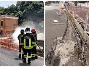 La linea ferroviaria Roma-Cassino è bloccata tra Zagarolo e Colleferro per una forte fuga di gas in via Casilina a Labico. Il forte flusso è fuoriuscito da una tubatura rotta durante dei lavori stradali. Sul posto vigili del fuoco, Italgas ed Enel.