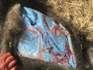 I cacciatori della contea di Monterey in California hanno riscontrato all'interno dei cadaveri degli ungulati che la carne era di un color blu particolarmente intenso. Il Dipartimento per la pesca e la fauna selvatica ha identificato il motivo nella presenza di un rodenticida che gli animali hanno mangiato ma che era destinato a topi, ratti e scoiattoli.