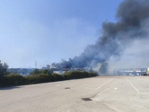 Un rogo è divampato nel primo pomeriggio di oggi, domenica 10 agosto, nei pressi del centro commerciale 'i Padiglioni' di via delle Cinque Miglia a Lavinio.