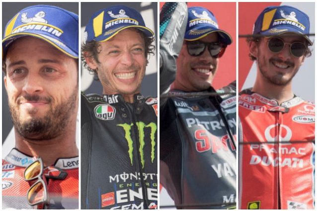 La MotoGP (senza Marc Marquez) si tinge d'azzurro. Andrea Dovizioso è leader della classifica del Mondiale 2020, Franco Morbidelli ha conquistato la sua prima vittoria in top class, Pecco Bagnaia il suo primo podio e Valentino Rossi ha sfiorato il 200° podio nella classe regina. Quattro italiani tutti in lotta per il titolo iridato in un Mondiale sempre più equilibrato e aperto a qualsiasi risultato.