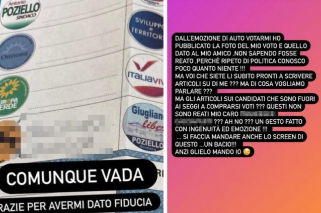 Una candidata al Comune di Giugliano (Napoli) ha pubblicato su Instagram la fotografia della propria scheda elettorale, con le preferenze già espresse, scattata all'interno del seggio elettorale. L'immagine è stata rimossa poco dopo, lei si è giustificata dicendo di non sapere che fosse reato e di non conoscere "poco quanto niente" di politica.