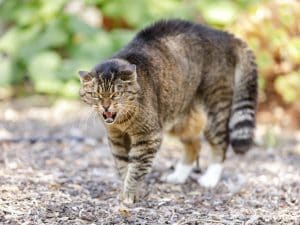 La coda gonfia indica eccitazione, paura o minaccia: il gatto cerca di comunicare il suo stato emotivo. Va interpretata insieme a postura, orecchie e occhi.