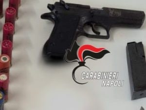 I carabinieri, giunti sul posto dopo la segnalazione anonima, hanno rinvenuto e sequestrato una pistola funzionante, munizioni e quasi due chili di droga.
