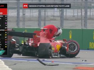 Disastrosa qualifica del GP di Russia per Sebastian Vettel. A due minuti dal termine del Q2 il tedesco della Ferrari è stato protagonista di un incidente che ha costretto i commissari ad esporre le bandiere rosse e sospendere momentaneamente le qualifiche.