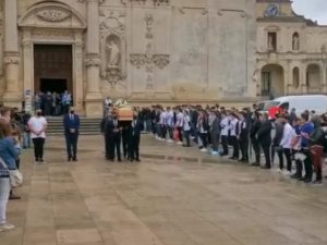 Si è svolto questa mattina presso la cattedrale di Lecce il funerale di Daniele De Santis, l'arbitro 30enne ucciso insieme alla fidanzata Eleonora Manta nella loro abitazione nei pressi della stazione ferroviaria della città salentina. Al termine della celebrazione il feretro è stato salutato dai suoi colleghi direttori di gara, e aspiranti tali, con il triplice fischio. Il vescovo Seccia al killer: "Costituisciti".