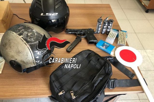 Due giovani di 18 e 17 anni, incensurati, sono stati arrestati dai carabinieri al termine di un inseguimento durato quasi 20 chilometri: avevano rapinato un ristoratore a Trentola Ducenta, sono stati bloccati nelle campagne di Varcaturo dopo un tentativo di fuga a piedi. Addosso avevano una pistola replica, nel loro scooter ritrovate cartucce a salve e una paletta simile a quella delle forze dell'ordine.