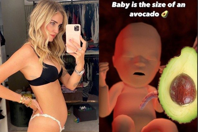 Dopo l'annuncio della gravidanza Chiara Ferragni ha cominciato a poter postare senza alcun problema immagini della pancia che cresce e anche foto di come cresce il bambino o la bambina. L'imprenditrice e influencer, infatti, ha postato l'immagine computerizzata di un neonato paragonato, per grandezza, a un avocado.