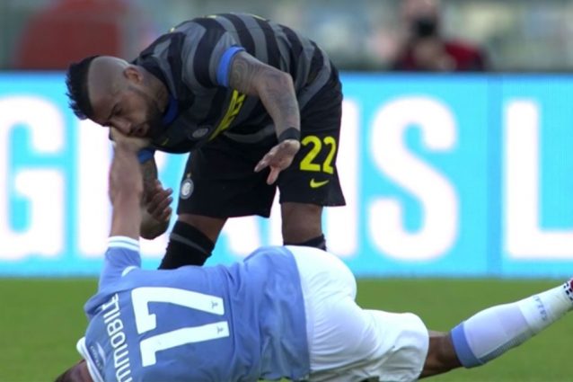 Ciro Immobile rischia una lunga squalifica dopo l'espulsione rimediata nella gara Lazio-Inter. L’attaccante biancoceleste è stato allontanato dal terreno di gioco al 69′ per un colpo al volto di Arturo Vidal e rischia una squalifica di tre giornate. Se questa dovesse essere la decisione del Giudice Sportivo, il centravanti salterebbe le sfide con Sampdoria, Bologna e Torino.