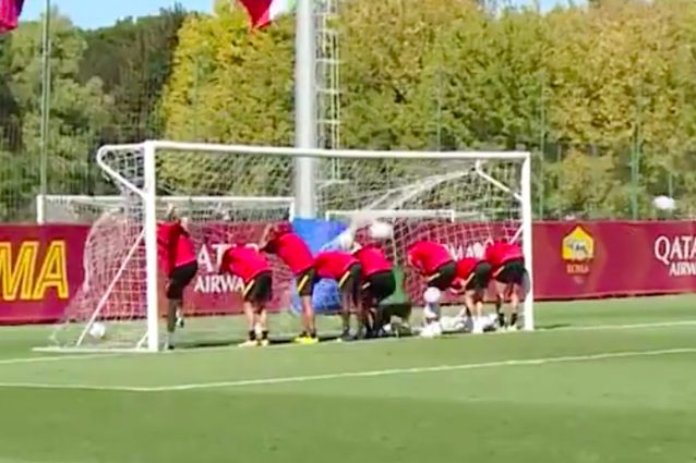 Al termine dell'allenamento quotidiano, i giocatori giallorossi che hanno perso la partitella sono stati costretti a schierarsi sulla linea di porta per ricevere la punizione riservata agli sconfitti. Una scena che ha strappato diversi sorrisi e confermato l'ottimo umore della squadra di Paulo Fonseca.