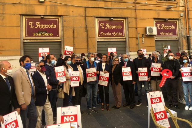 Manifestazione di protesta a Santa Lucia dei gestori di baretti, ristoranti e altri locali della movida contro l'ordinanza anti-Covid di De Luca che ha imposto la chiusura alle 23: "Così le attività falliranno. Subito correttivi". Delegazione ricevuta in Regione. Confcommercio: "Presto incontro col governatore".