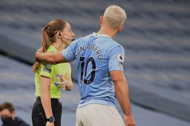 Nalla partita el Manchester City contro l'Arsenal, il 'Kun' Aguero ha posto una mano sul collo della guardalinee Sian Massey-Ellis, 'rea' di una decisione non condivisa. Bufera sui social per quel gesto inopportuno verso una donna. E sul fatto che l'arbitro non sia intervenuto espellendo il giocatore secondo il regolamento di Premier.