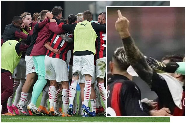 Davide Calabria è stato immortalato sui social con il dito medio alzato durante i festeggiamenti rossoneri per la vittoria nel derby. Gestaccio rivolto al popolo nerazzurro che potrà però essere snzionato dal Giudice Sportivo unicamente se sarà stato messo a referto. Se né ildirettore di gara, i suoi assistenti o i membri federali non l'hanno visto, nessuna sanzione.