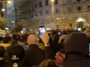 Manifestazione nella notte a Salerno contro il coprifuoco ed il nuovo DPCM: il corteo, organizzato dai commercianti, si è poi diviso con la maggior parte che ha fatto rientro nelle proprie abitazioni mentre un piccolo gruppo ha provato a raggiungere il quartiere del Carmine dove vive De Luca, ma è stato disperso dalle forze dell'ordine.