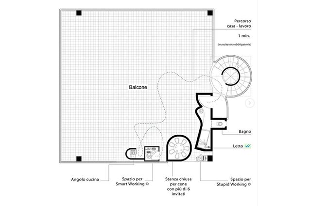 Dall'Arch. Stefano Boeri a Cino Zucchi, la Casa Lockdown condivisa da un provocatorio profilo Instagram sta riscuotendo grande successo. L'immagine postata mostra un'abitazione fatta principalmente da spazio all'aperto, dove rilassarsi e poter camminare, e pochi spazi intimi, ideale per affrontare un possibile futuro lockdown a causa della pandemia globale.